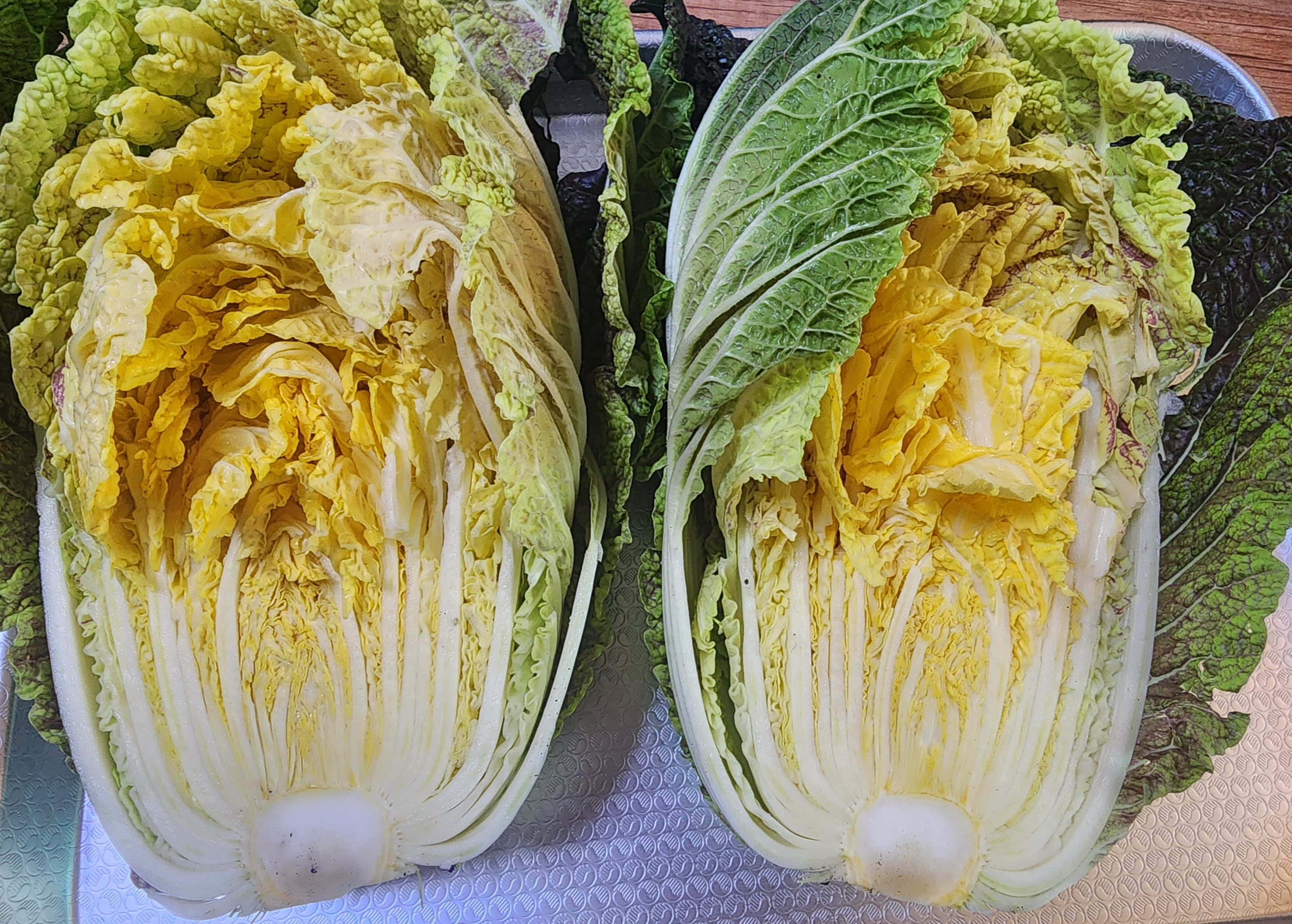 우리는 김장배추의 경우 얼었다 녹았다를 반복하며 최대한 달아지라고 김장 직전까지 수확을 미루는 편인데, 배추를 키우는데 크게 신경을 쓰지 못했지만(올해는 배추를 거의 방임 상태로 놔뒀다) 배추의 상태가 아주 나쁘지는 않아서 수확 직전의 배추를 기록으로 남겨 놓는다.